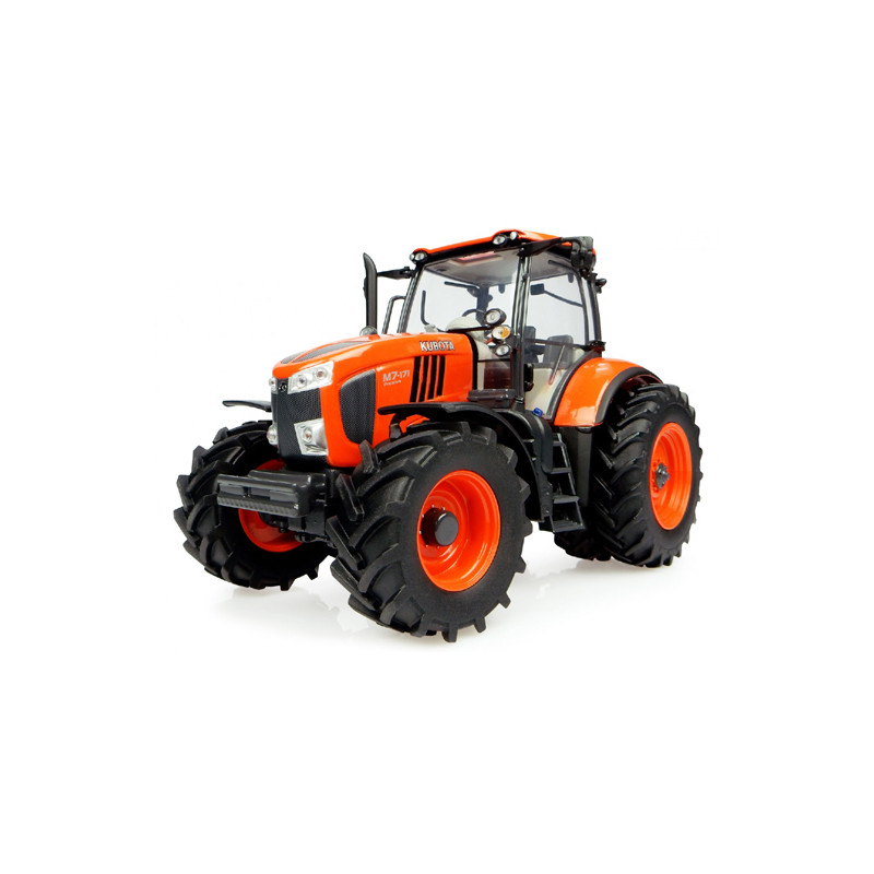 Reproduction à l'échelle 1/32 du tracteur Kubota M7-171 (version US) avec roues arrières jumelées.