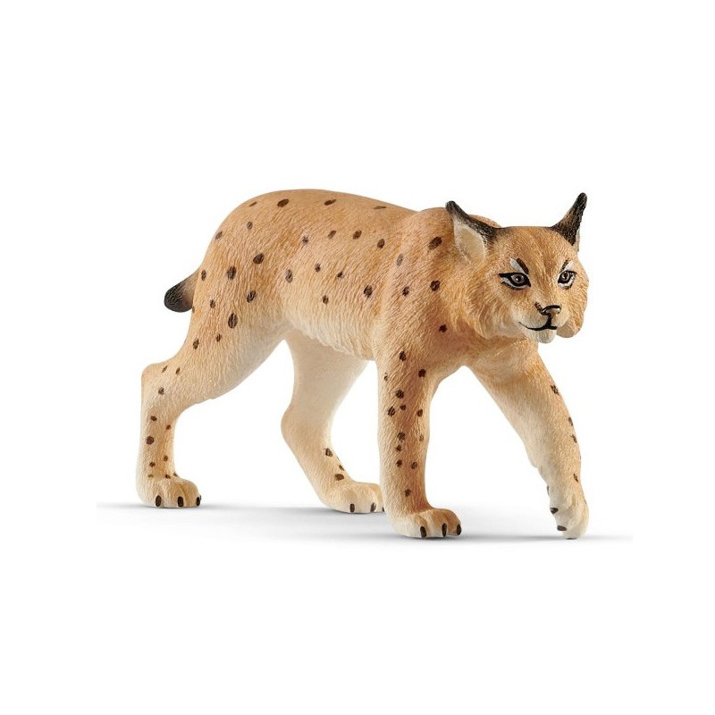 Le lynx est célèbre pour ses oreilles surmontées d’une touffe de poils noirs ressemblant à un pinceau. Les lynx vivant dans des zones plus froides ont des pattes plus grandes avec des coussinets plus épais. Le Lynx Schleich est reproduit dans les moindres détails.