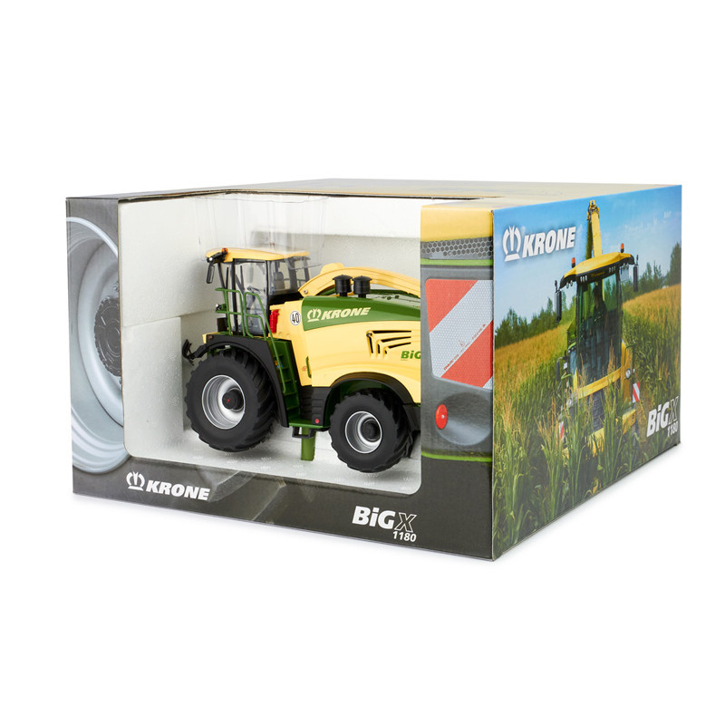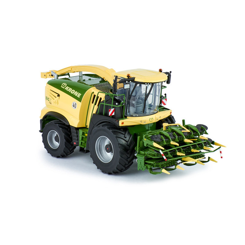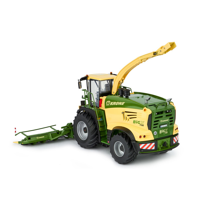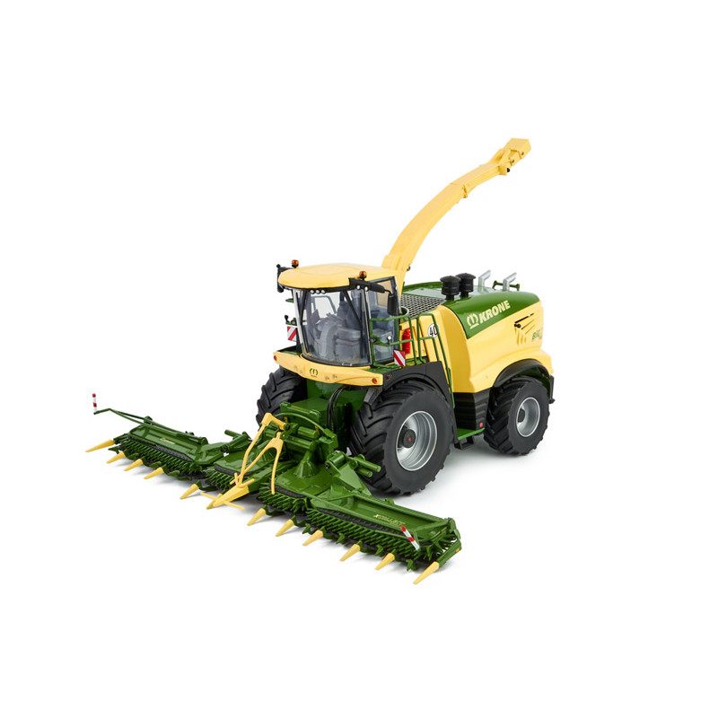 Ensileuse miniature Krone BigX 1180 avec coupe à maïs et pick-up à herbe à l'échelle 1/32 du fabricant ROS, ensileuse de collection reproduite fidèlement au modèle original.