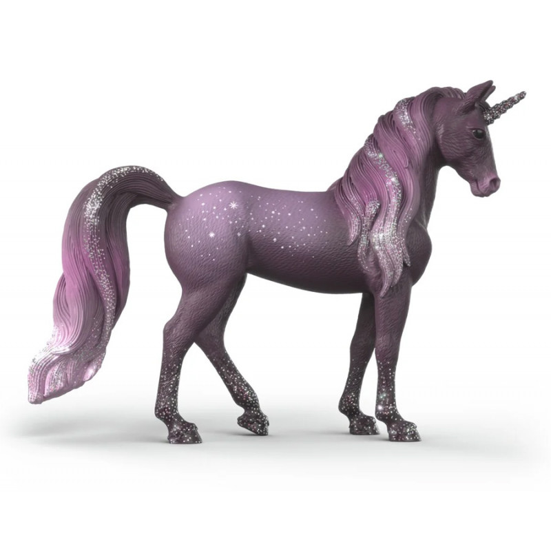 La jument licorne arc-en-ciel Galaxy de Schleich est magnifique avec ses teintes de violet et rose. Les paillettes sur son corps la rendent étincelante. Cette licorne plaira aux petites filles et aux collectionneurs.