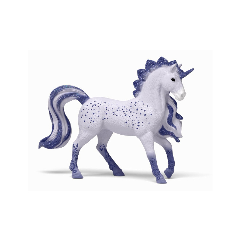 L’étalon licorne Cosmos a une allure impressionnante avec sa crinière scintillante et son tatouage étoilé brillant. Cette licorne Schleich plaira aux petites filles et aux collectionneurs.
