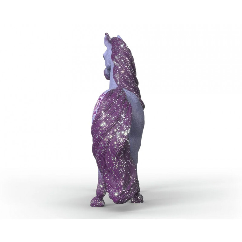 L'étalon licorne Orchid de Schleich est magnifique avec sa couleur violette et les paillettes au niveau de sa crinière, ses pattes et sa queue.