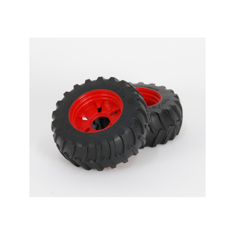 Une roue avant gauche et une roue avant droite pour le tracteur Fendt 1050 vario du fabricant Bruder référence 04040 ou 04041.