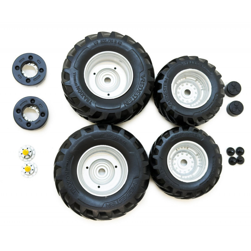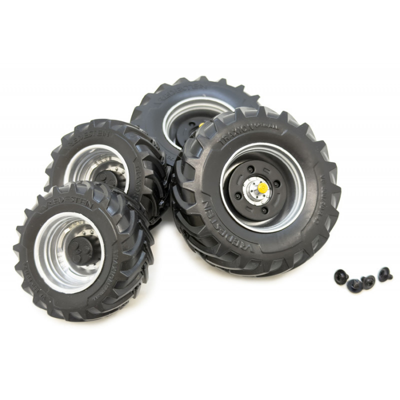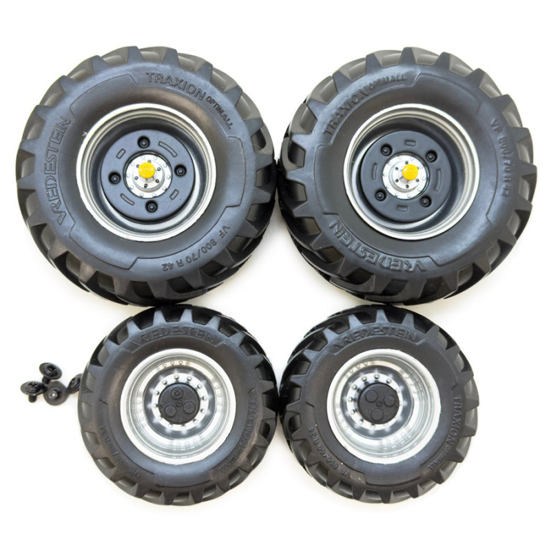 Set de 2 roues avant et 2 roues arrières Vredestein à l'échelle 1/32 pour modification ou création artisanale d'un tracteur miniature.
