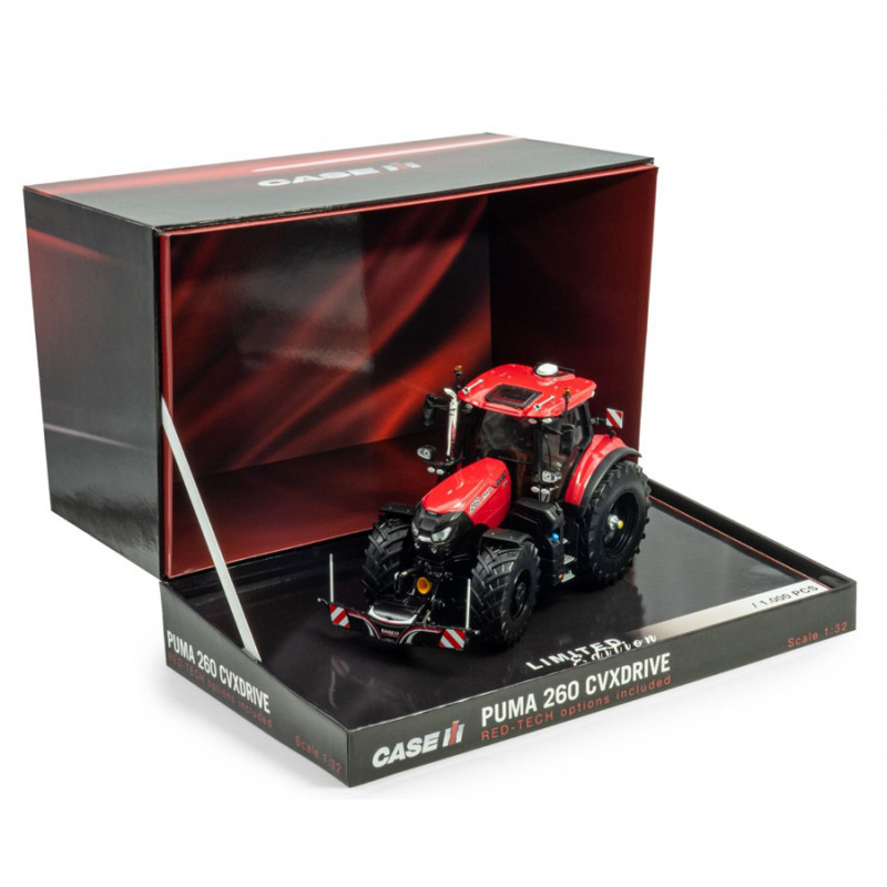 Tracteur Case IH Puma 260 CVXDrive version RED-TECH options avec masse frontale agribumper à l'échelle 1/32 présenté dans un coffret, série limitée à 1000 exemplaires